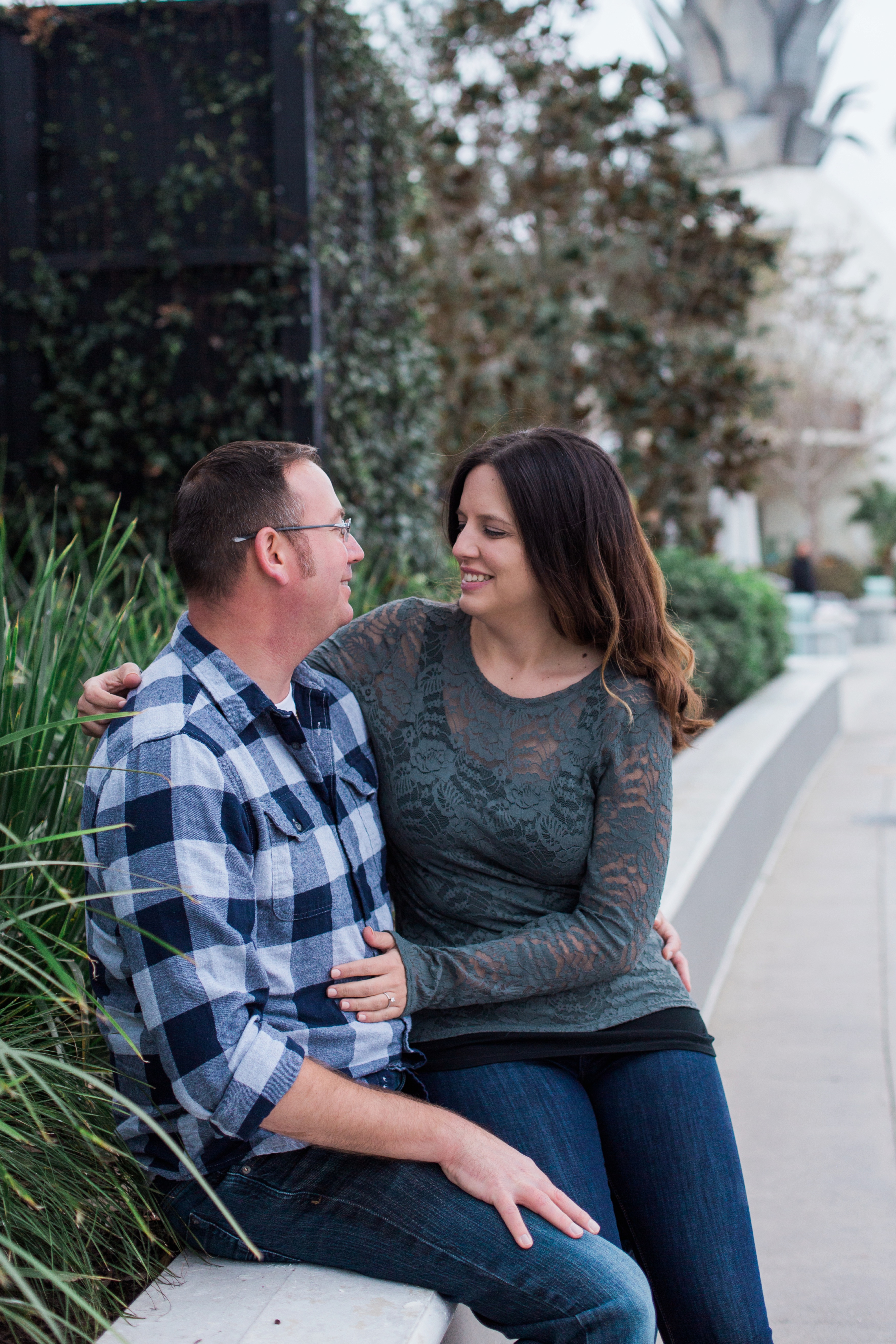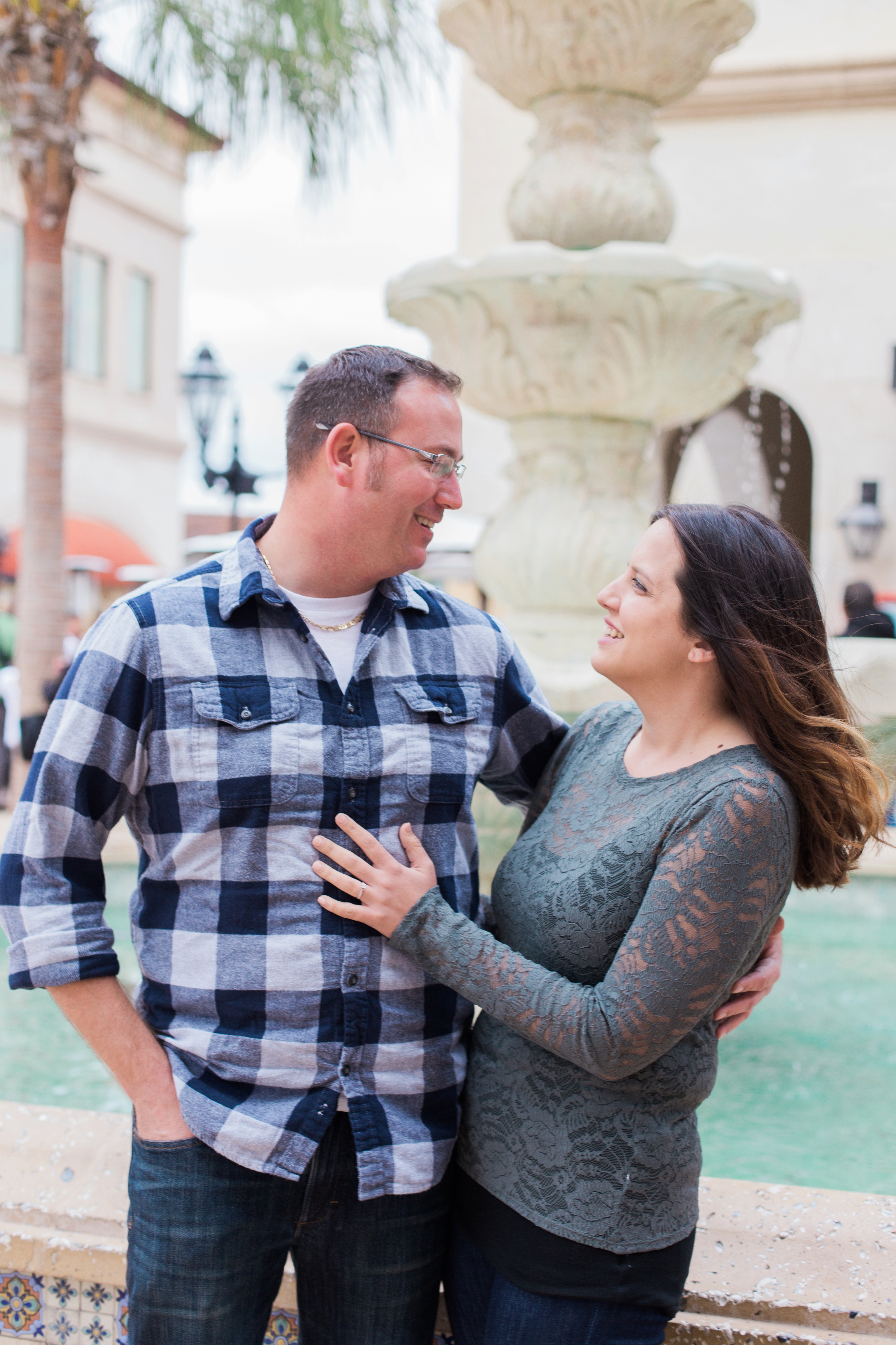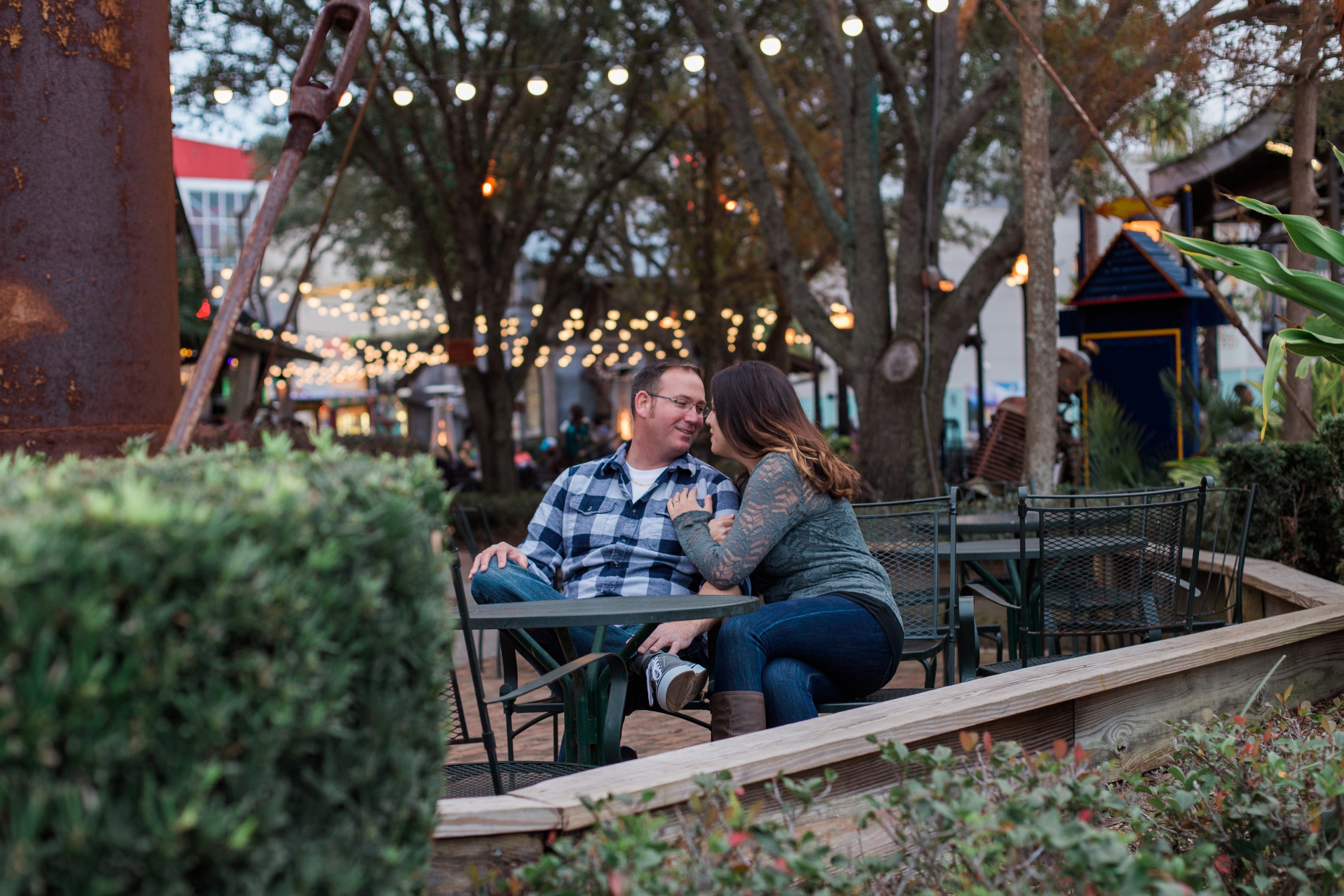 Disney Springs is one of my favourite hang out spots while I am on vacation in Orlando. This place offers lots of exciting night life options, like live music and dining. However, it is also my favourite spot to pick up some great Walt Disney World souvenirs. When we were trying to decide on a location for this wonderful couples engagement session they were looking for a location that offered some water options, brick backdrops and greenery. I knew this would be the best option to get all the items they were wanting.
