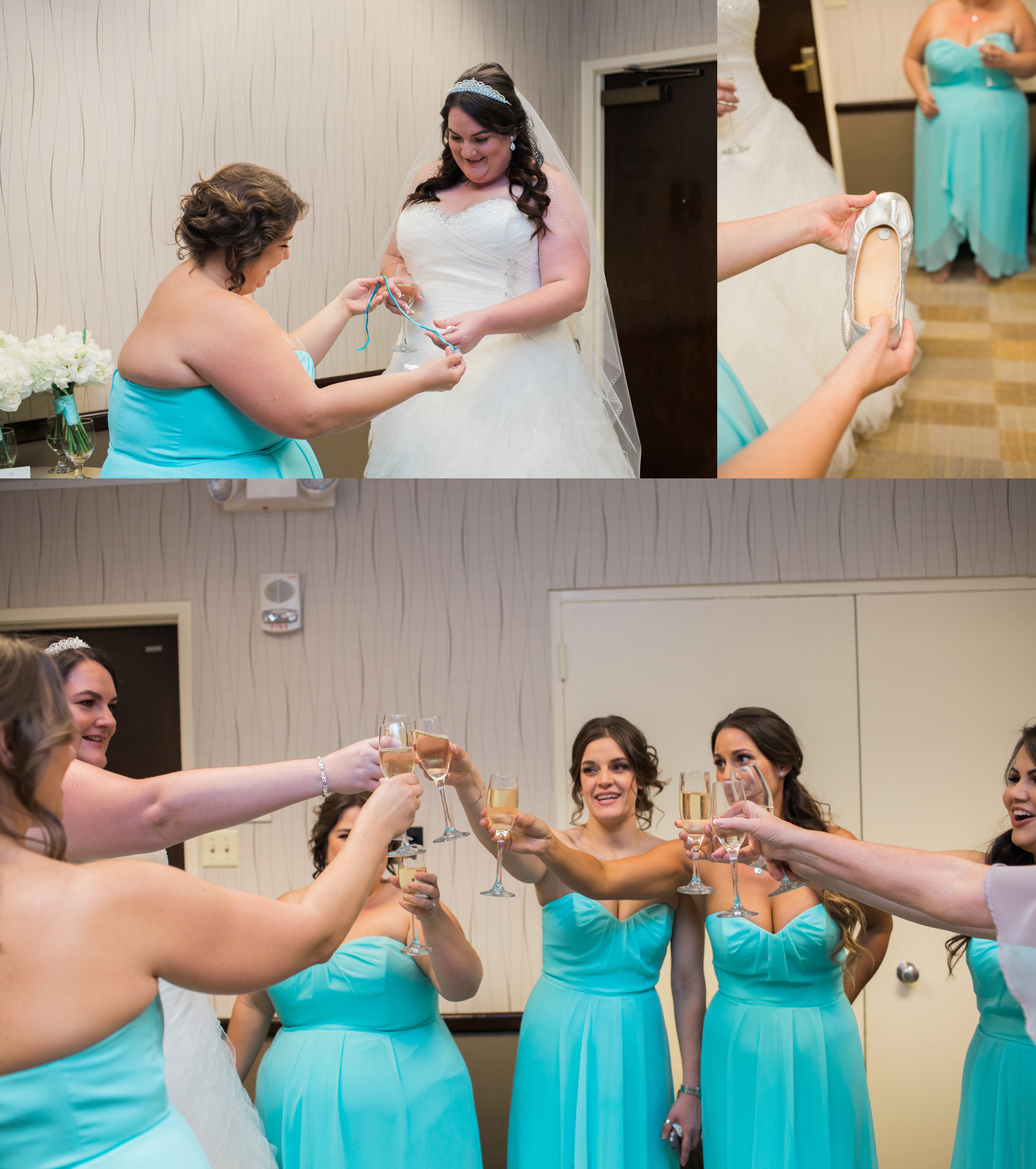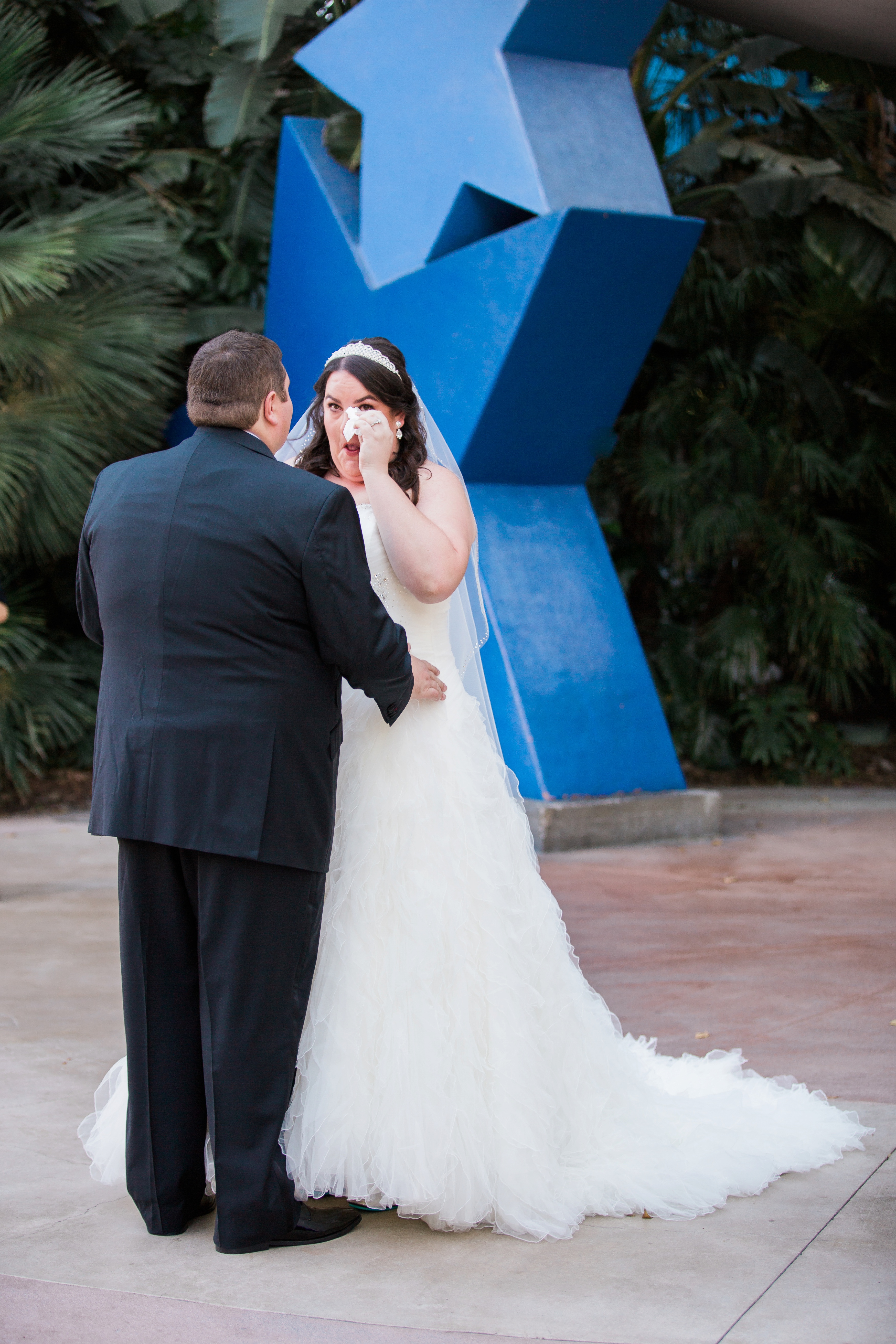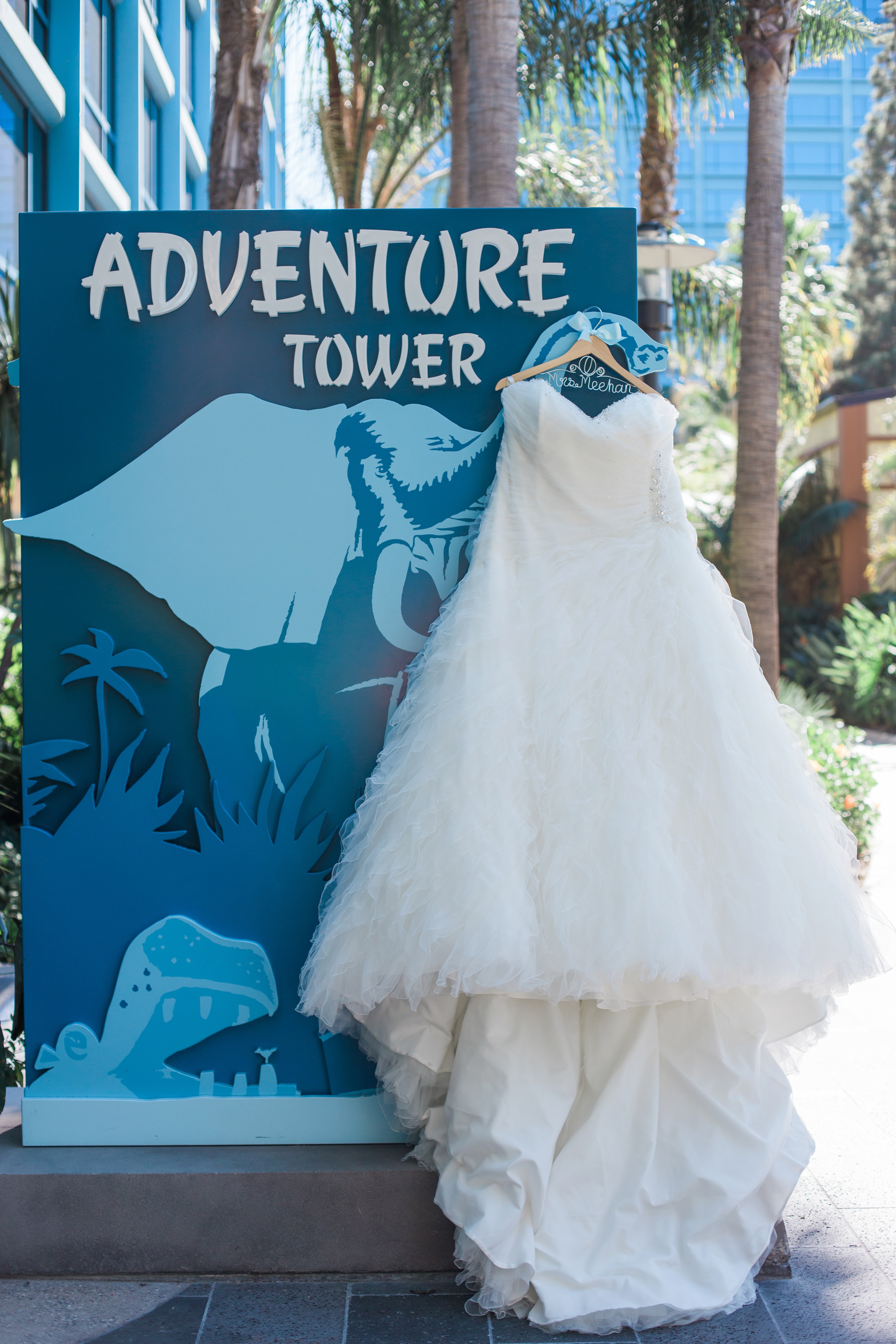 My husband and I flew from Orlando, Florida to join Margaret and her family at Disneyland in October. Our day began like always. With the bride and her ladies for hair and makeup. The ladies were in Adventure Tower at the Disneyland Hotel. I was so excited to see her wedding gown. It is one of my favourite parts of the day. Her wedding gown though was fit for a princess. It suited her perfectly. One part of the day that stands out to me the most was when Margarets bridesmaids surprised her with some gifts. They had set a table aside with something new, borrowed and blue. They each said a little something sweet and handed her a trinket. These included things from her birth, pieces from friends weddings and so on. There was not a dry eye in the room. It really was a touching moment.
