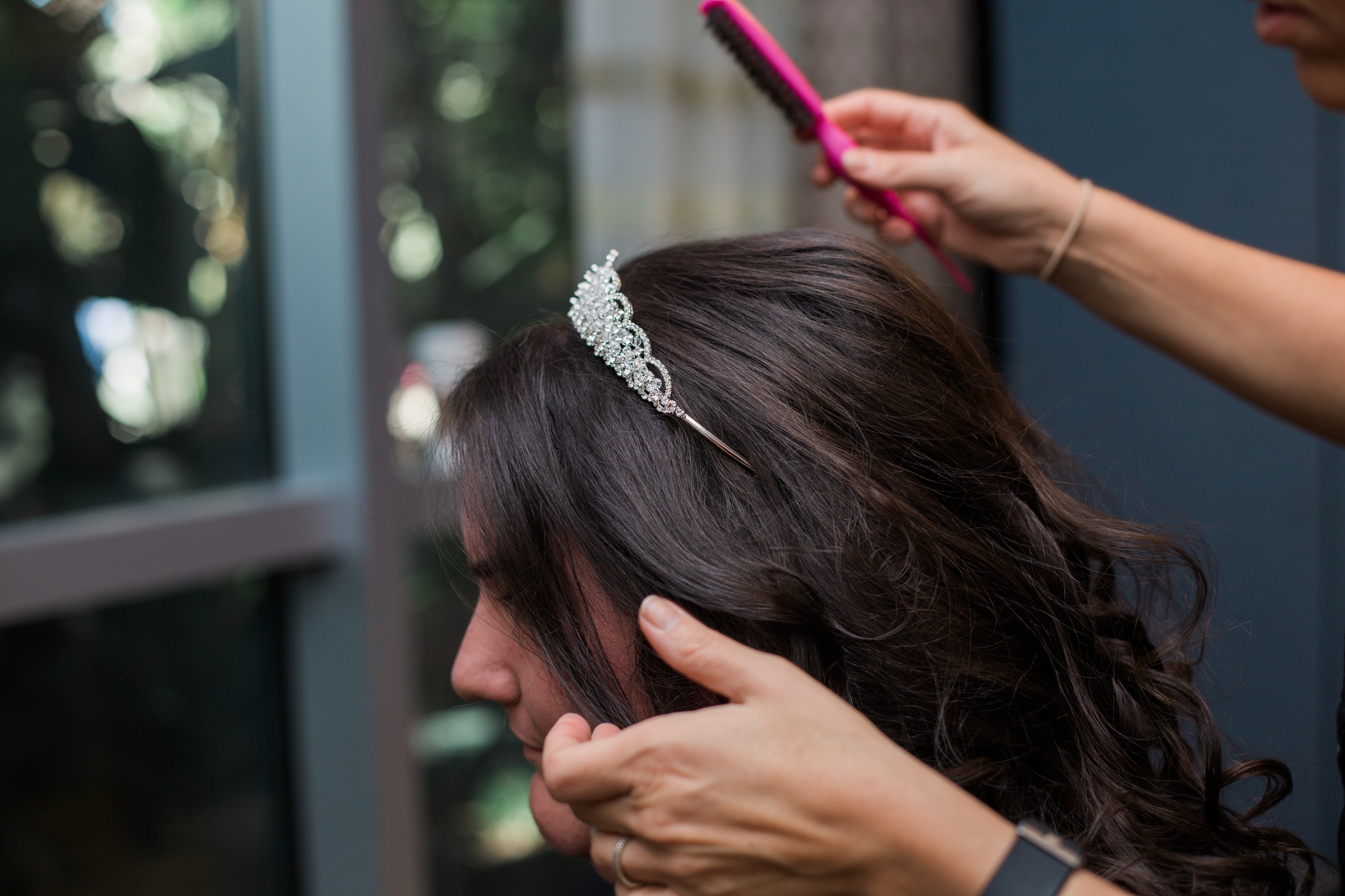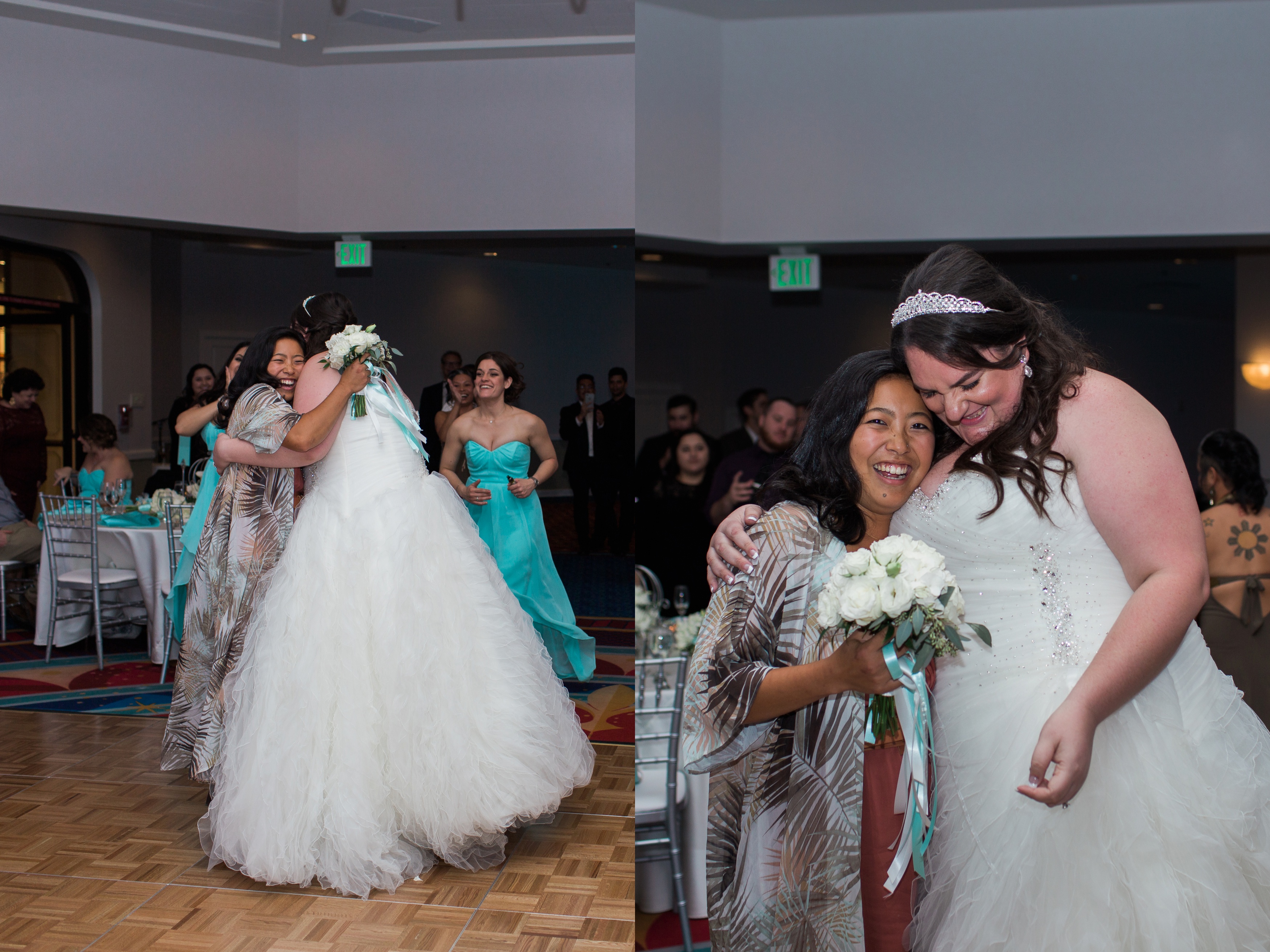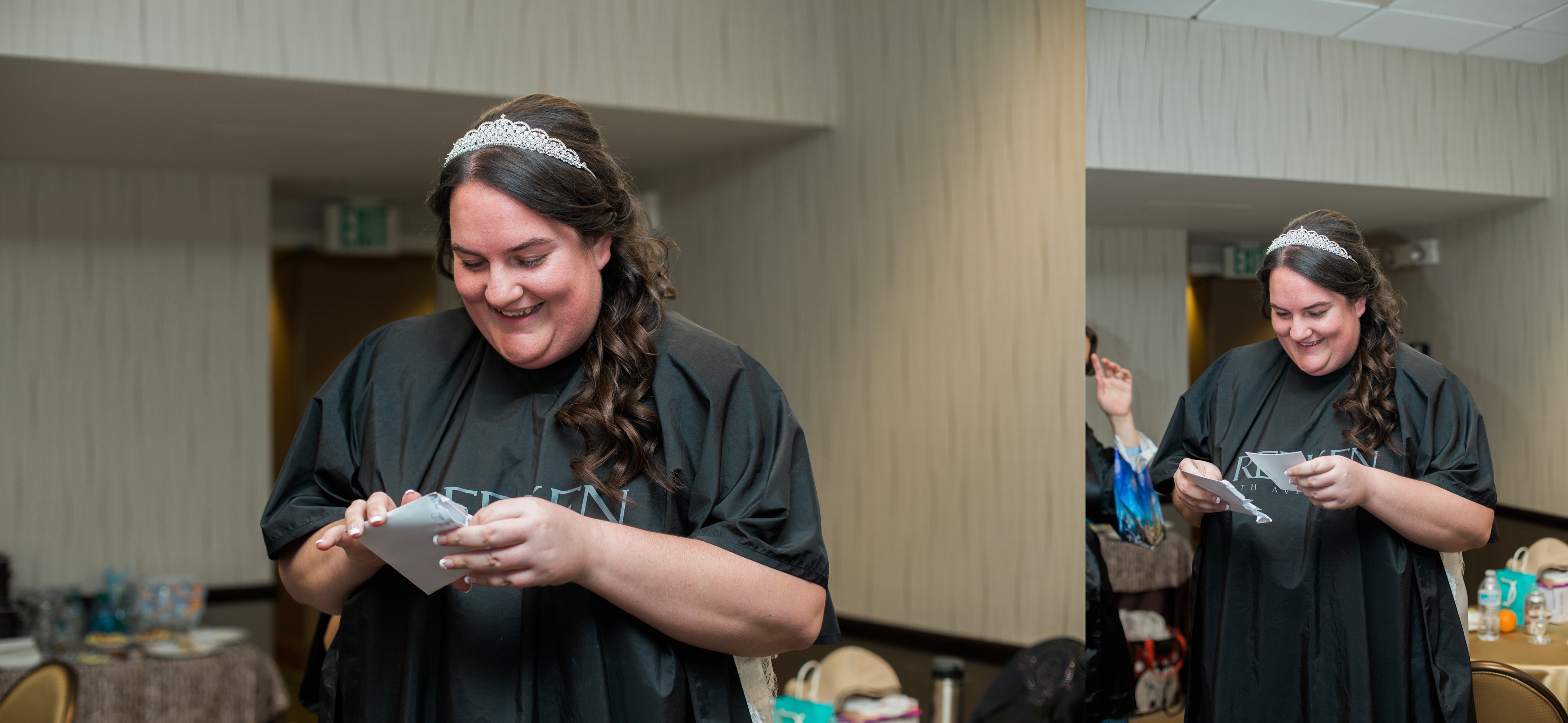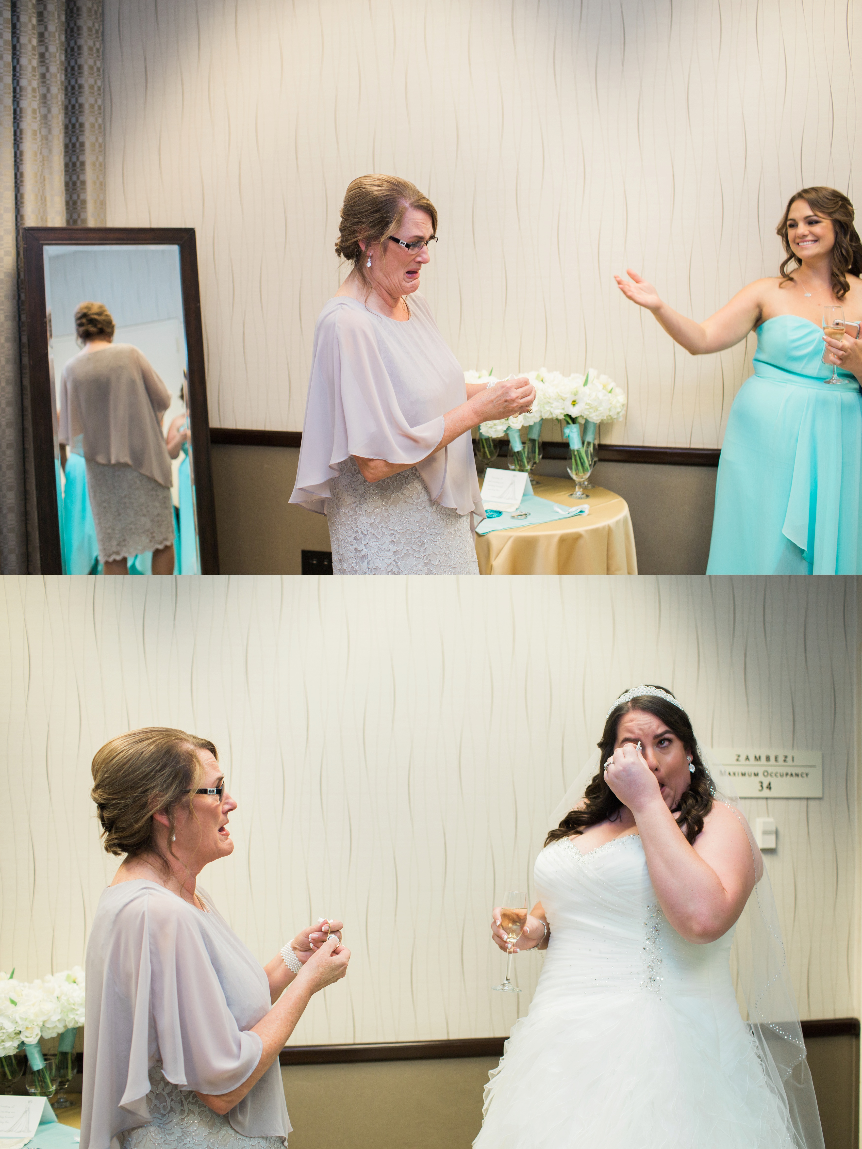 My husband and I flew from Orlando, Florida to join Margaret and her family at Disneyland in October. Our day began like always. With the bride and her ladies for hair and makeup. The ladies were in Adventure Tower at the Disneyland Hotel. I was so excited to see her wedding gown. It is one of my favourite parts of the day. Her wedding gown though was fit for a princess. It suited her perfectly. One part of the day that stands out to me the most was when Margarets bridesmaids surprised her with some gifts. They had set a table aside with something new, borrowed and blue. They each said a little something sweet and handed her a trinket. These included things from her birth, pieces from friends weddings and so on. There was not a dry eye in the room. It really was a touching moment.