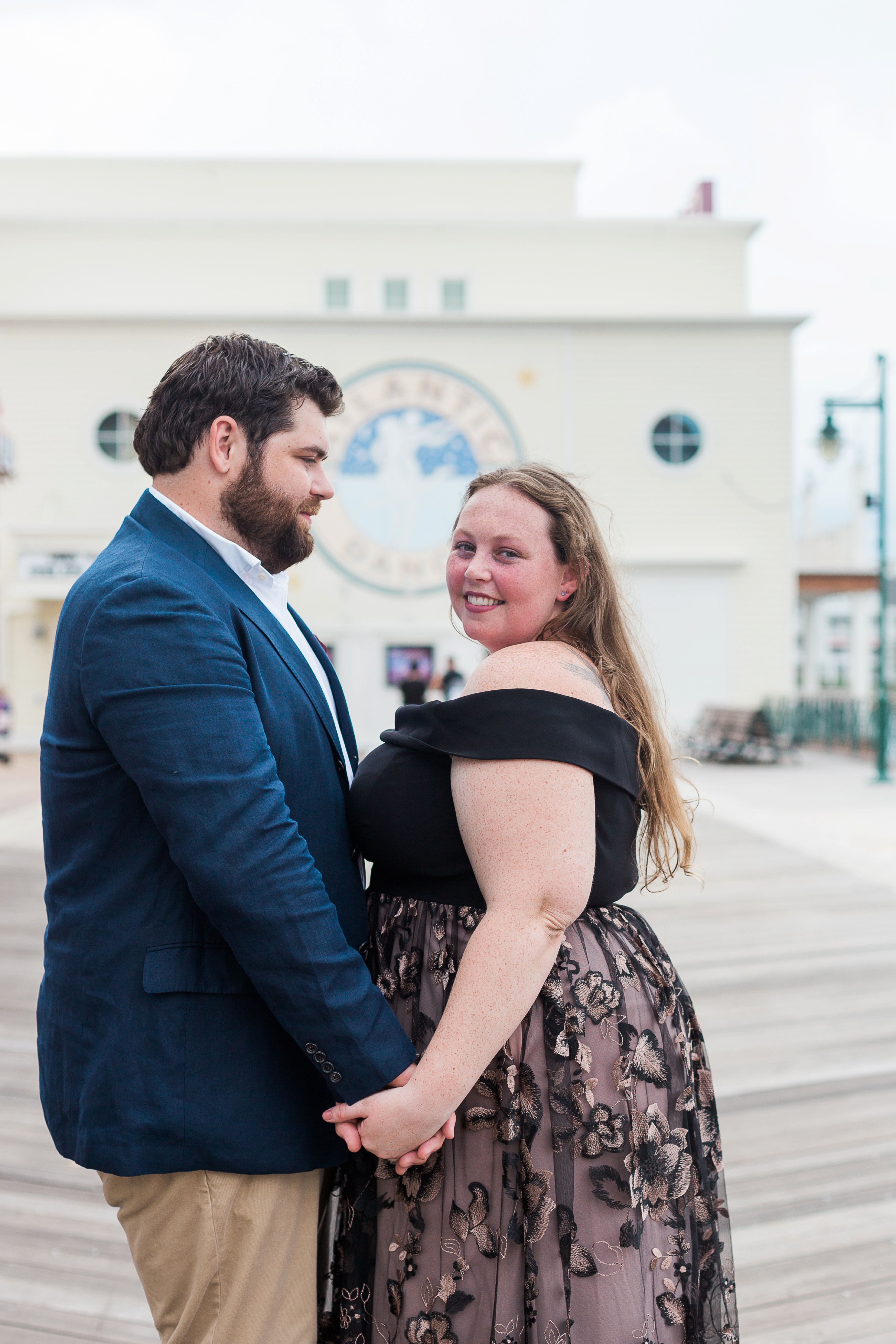 Let me start this post off with how much I love doing Disney portrait sessions at the Boardwalk Resort. This Boardwalk is full with so much old school class and charm. So I knew when Rebecca suggested this as the backdrop for their Disney portrait session I knew we were in for a great time. However, when Rebecca and Hunter arrived they were dressed to perfection for this shoot. My photographer heart was so happy. The weather we had for this session was so perfect and the hazy sunset made the images pop. We began on the boardwalk closest to the Swan & Dolphin Resort, near Jellyrolls and the Atlantic Dance Hall. For me, this is my favourite side of the boardwalk. I love the that straight lines, the baby blue and white stripped walls and the art deco on the dance hall is a great eye catcher. Rebecca and Hunter chose Disney’s Boardwalk Resort as their photo location as they are Disney Vacation Club members and their home resort is just across the lake. They spend many nights here enjoying entertainment and dining. They will be having a Disney Fairytale Wedding in June 2019. It was so nice to spend the evening with them for this photo session. I wish you both the best wedding planning experience and hope we see each other again soon.
