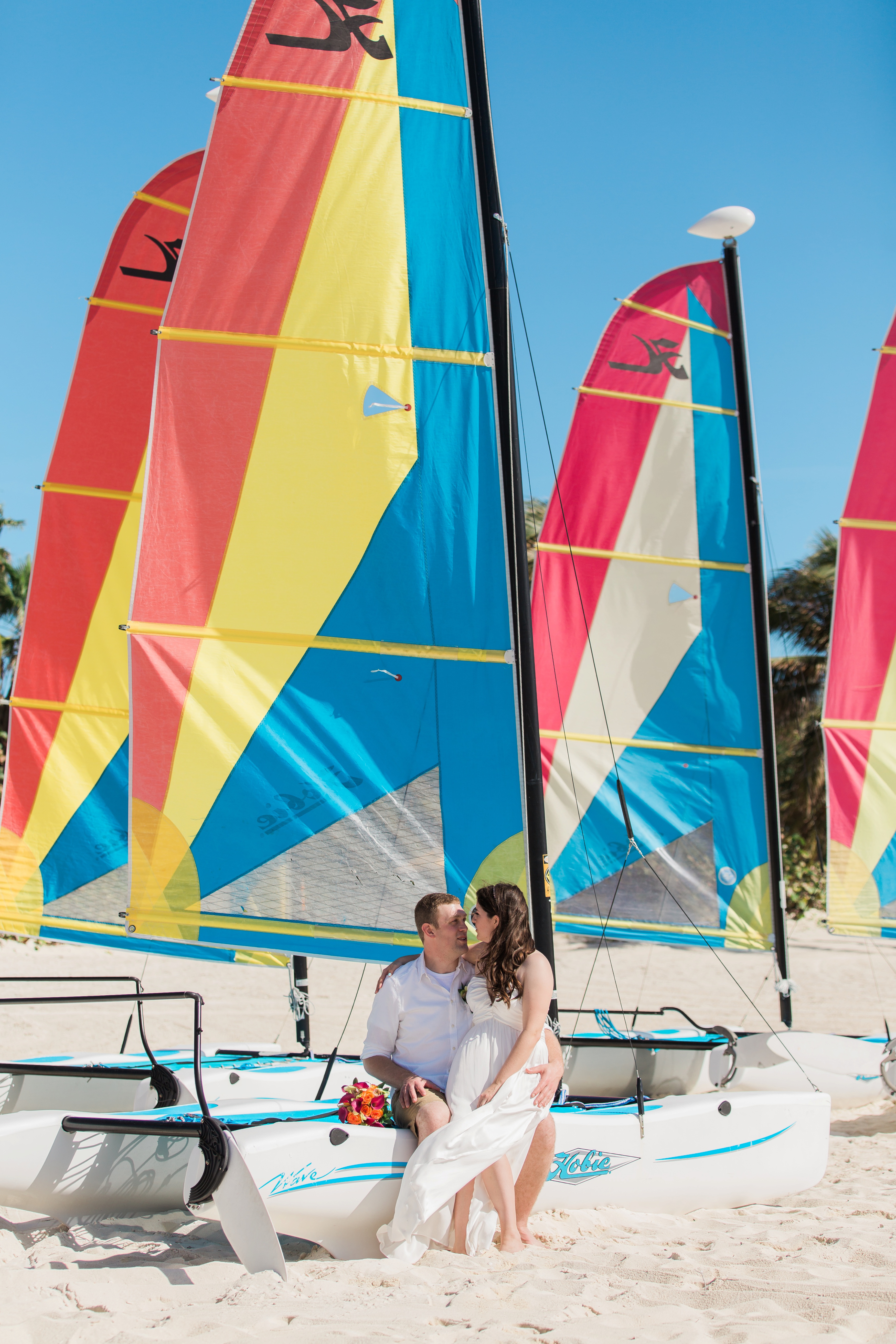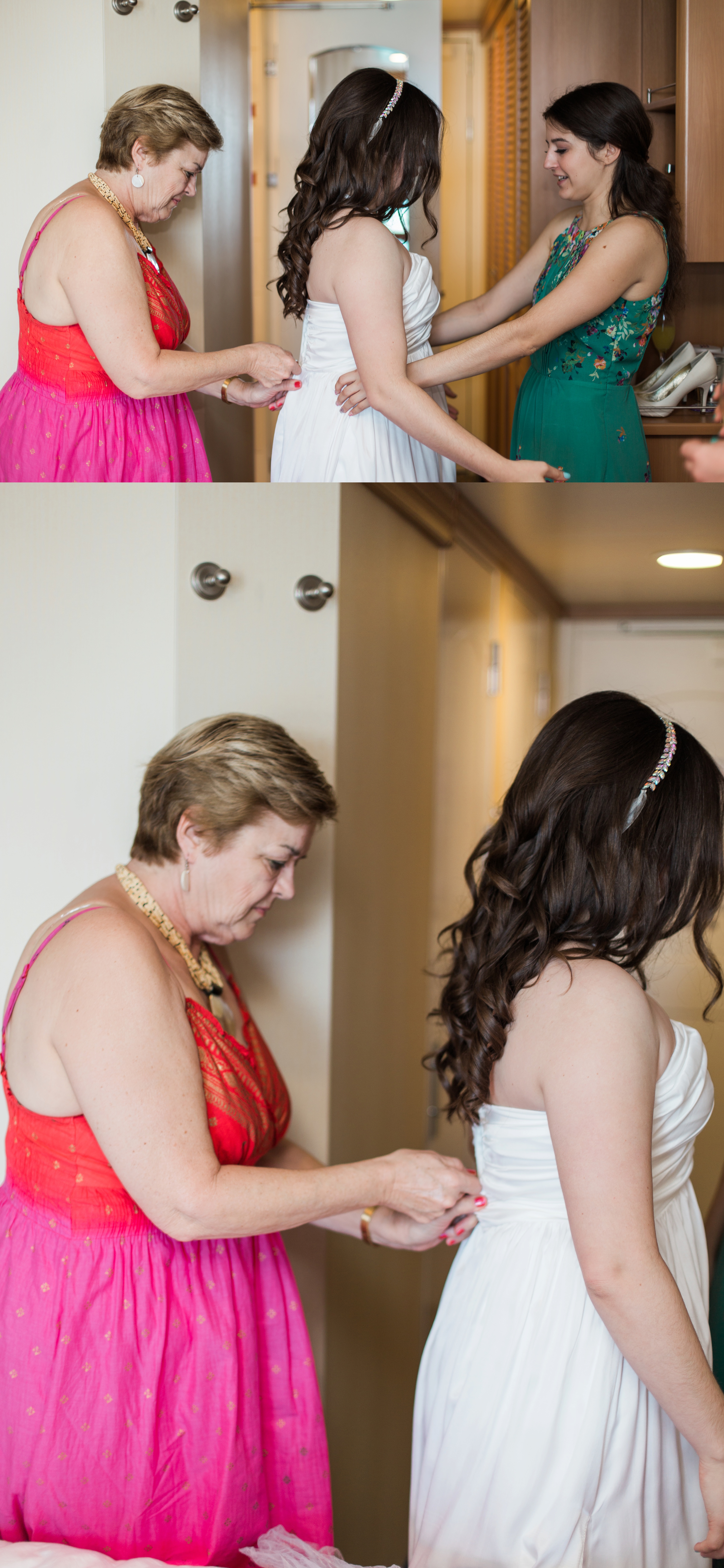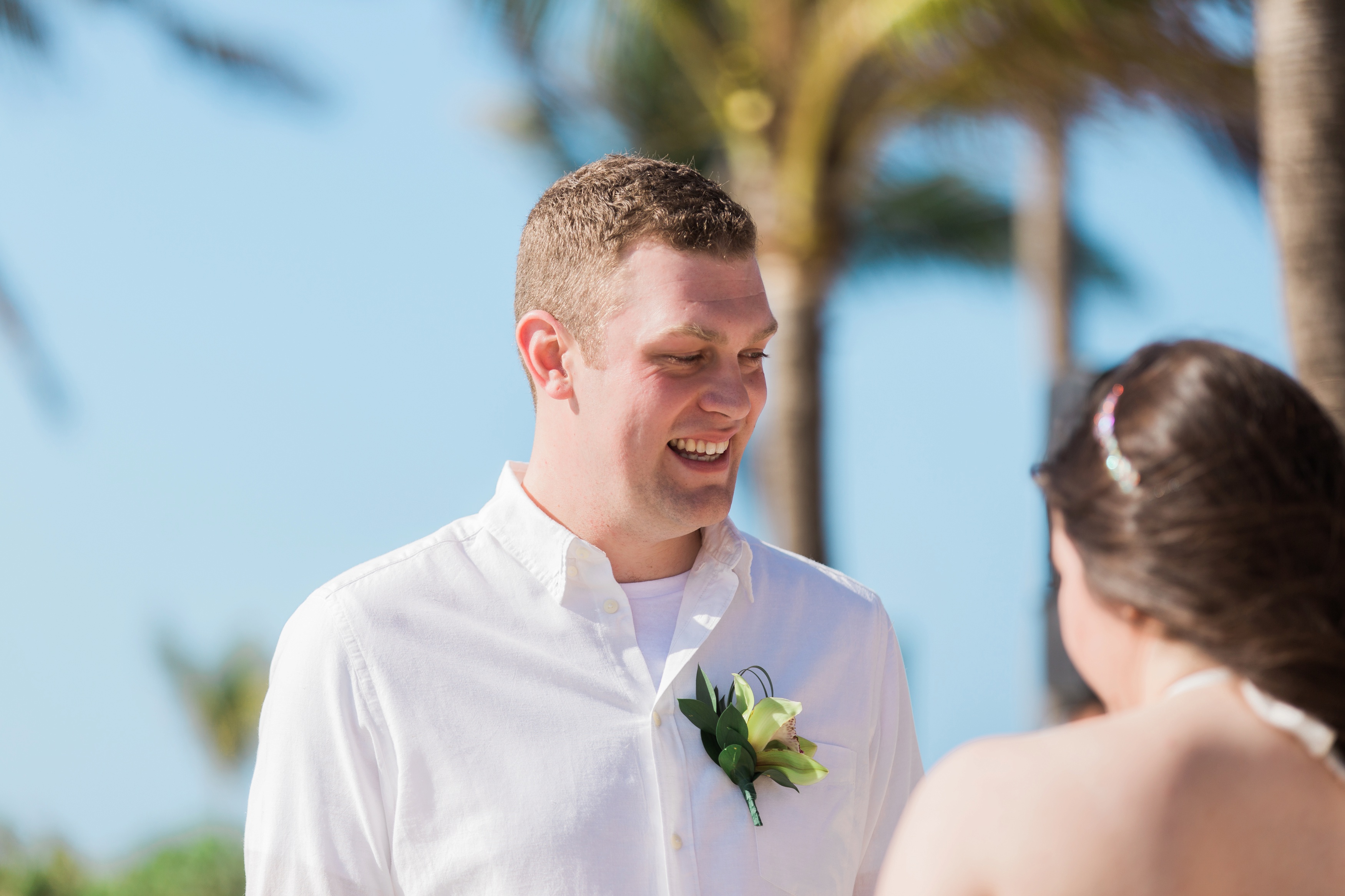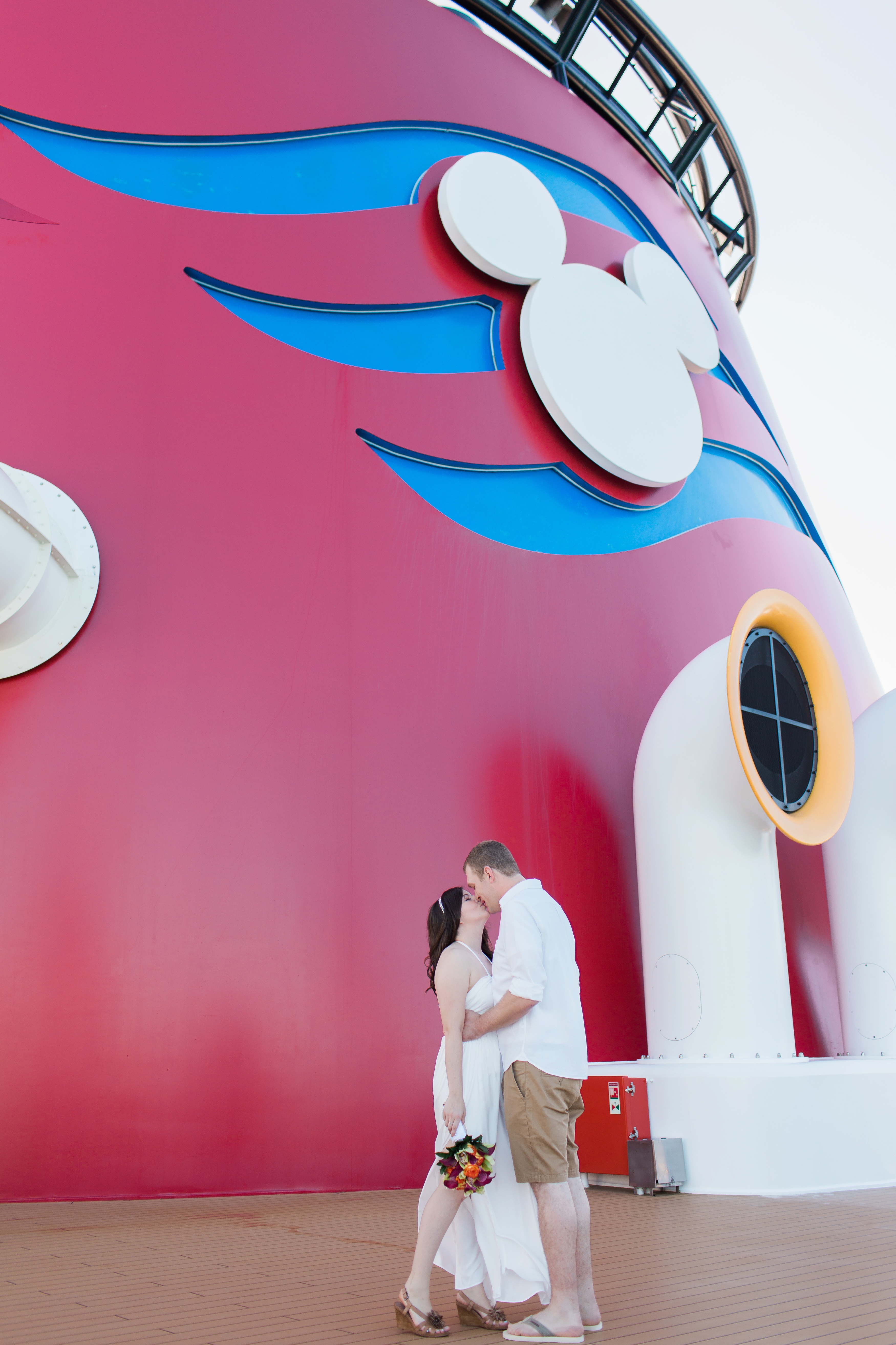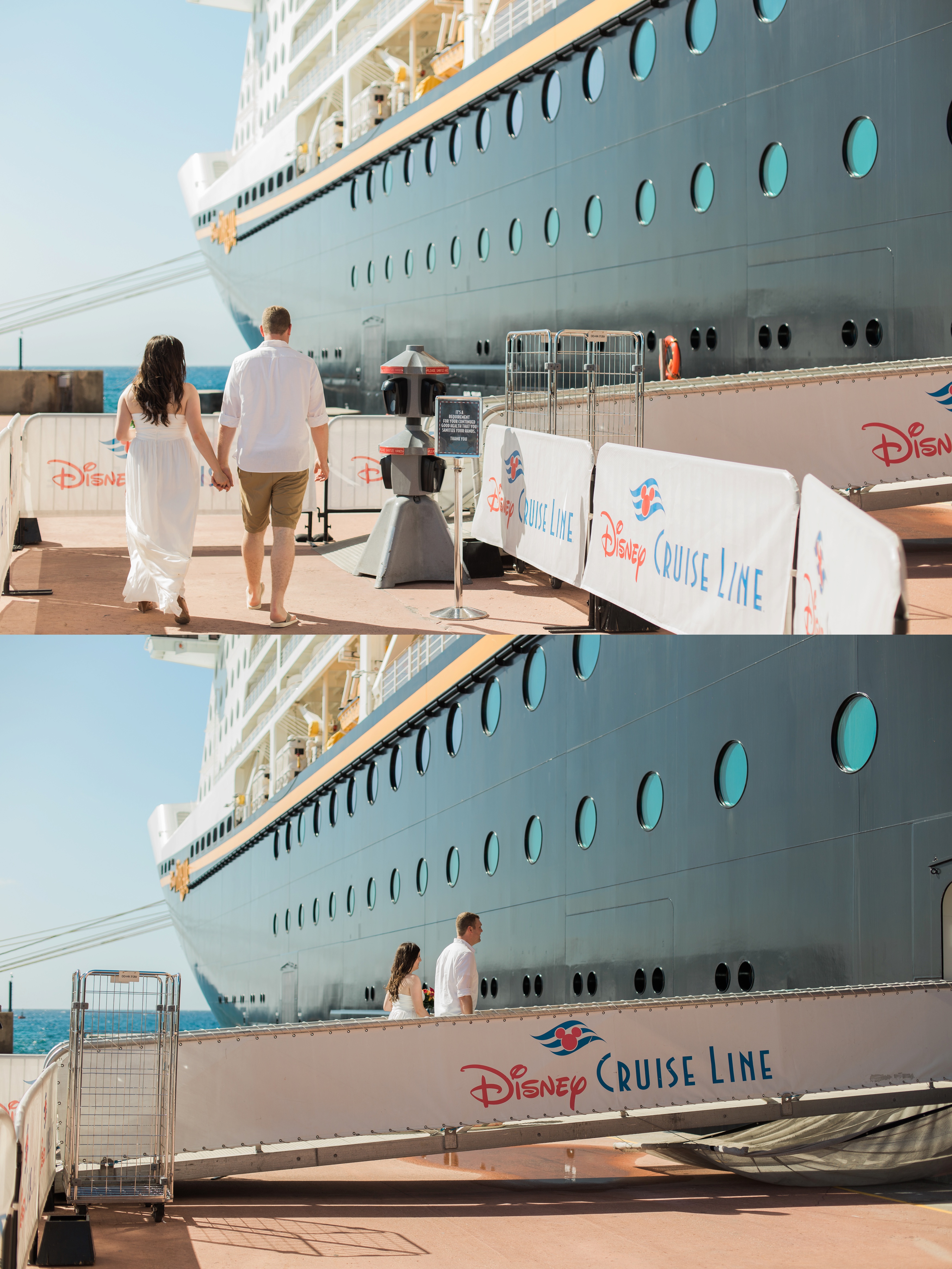 Our day began with the slow and easy with getting ready in the rooms with both the bride and groom and their wedding party. This by far wast the most laid back couple I have had I think ever in my career as a destination wedding photographer. It was a very go with the flow style wedding which I was totally ok with. They had their ceremony at Pelican Point with the Disney Dream ship in the background with 40 of their family and friends in attendance. The little ring bearer totally rocked his job carrying the sand pail down the aisle and looked absolutely adorable in his suspenders and Mickey Mouse bow tie.