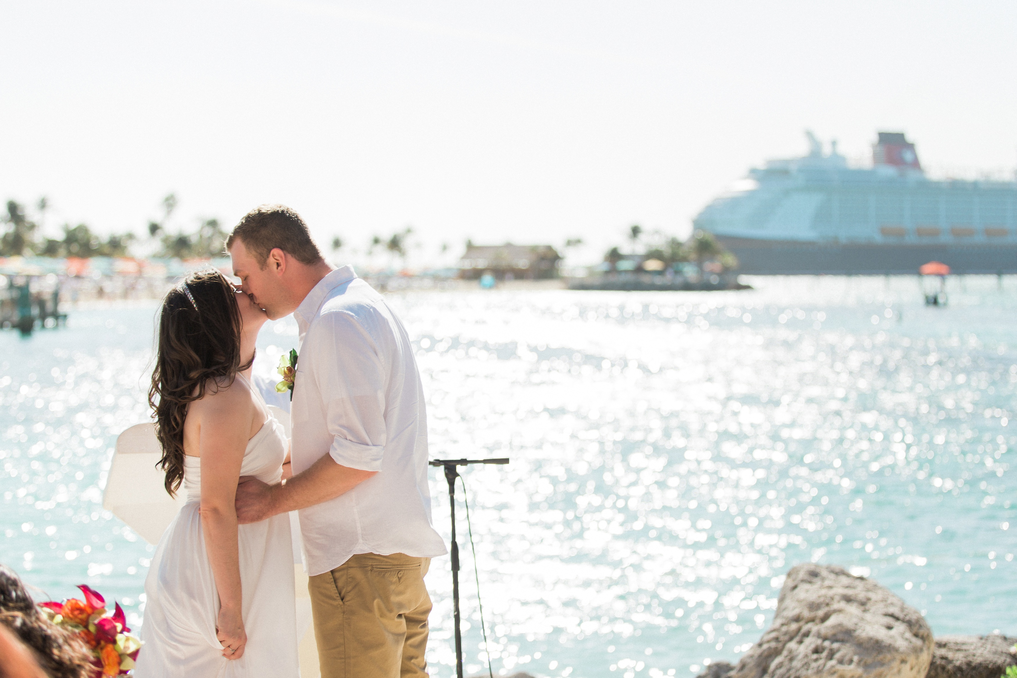 The ceremony was short and sweet and filled with happy smiles and laughter. The weather was absolutely perfect and I could not have been happier for the both of them. After the ceremony we went back on board the ship for a champaign toast and the most delicious cake I think I have ever eaten followed by some more formal photos in some new attire. When we were all finished we all took to the island to enjoy some fun in the sun. I can only wait until my next Disney Cruise Line Wedding and hope it comes sooner than later. It was an absolute dream (pun intended) and I am so thankful for the opportunity to have shared in their wedding day. I hope you love the images as much as I do.