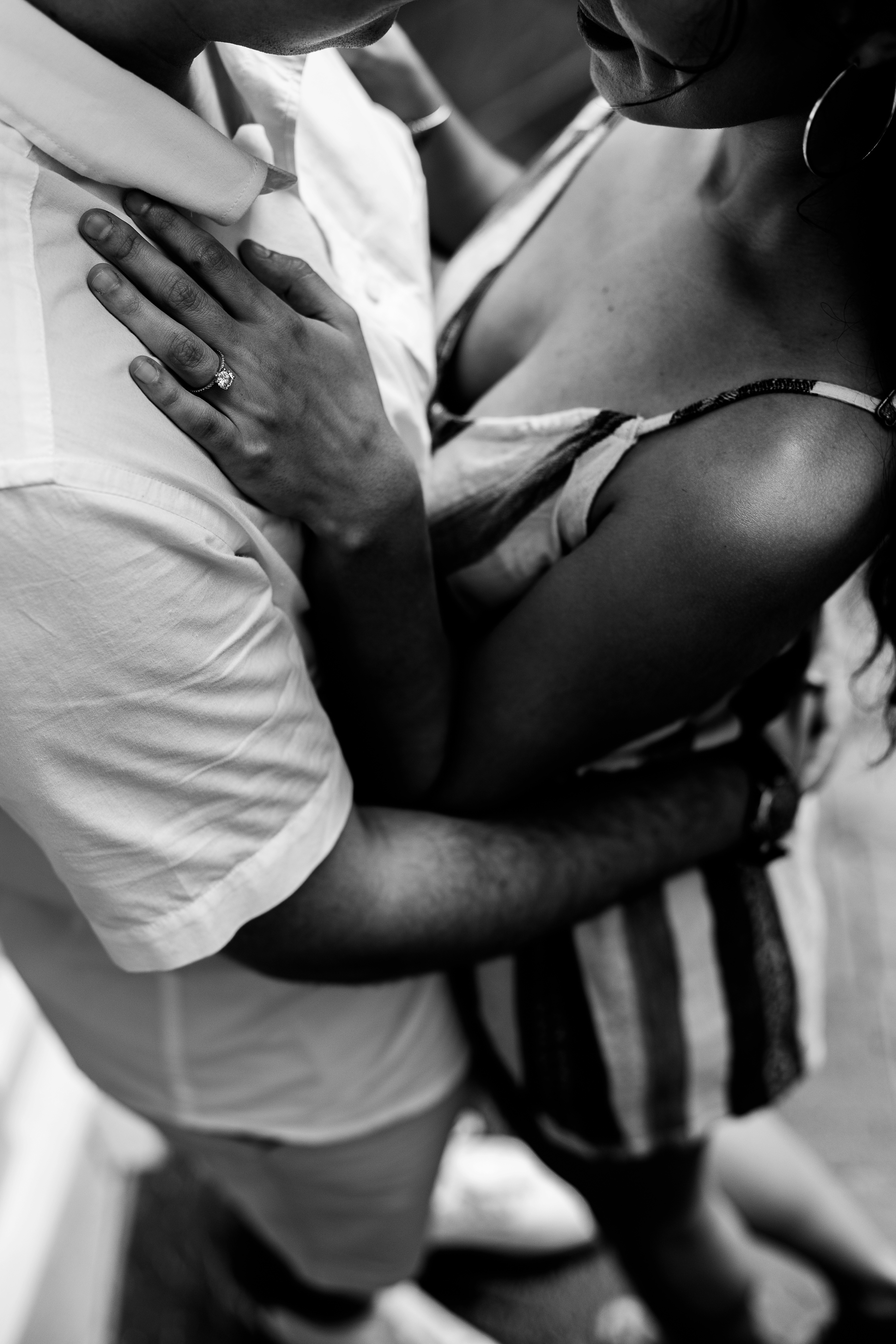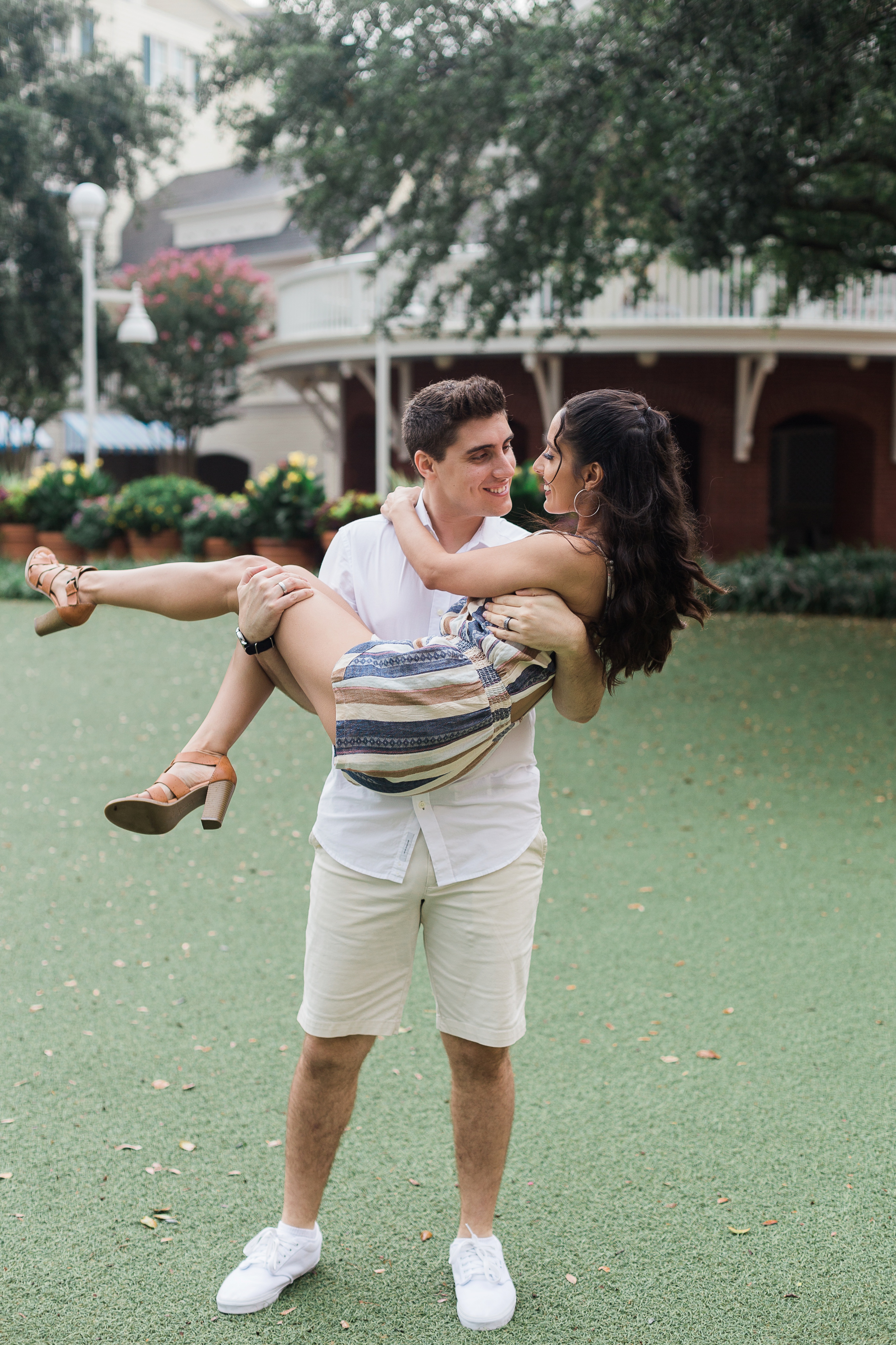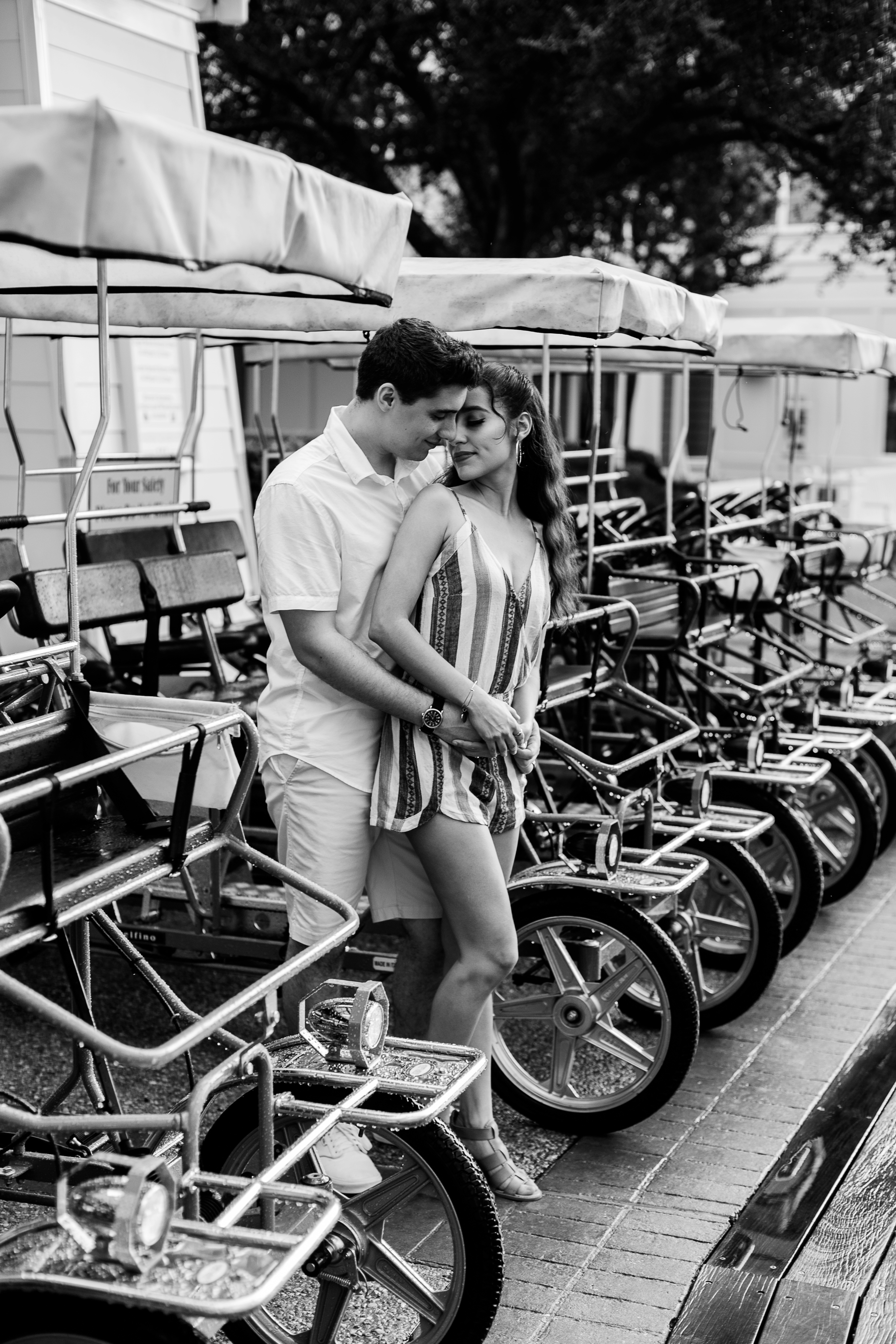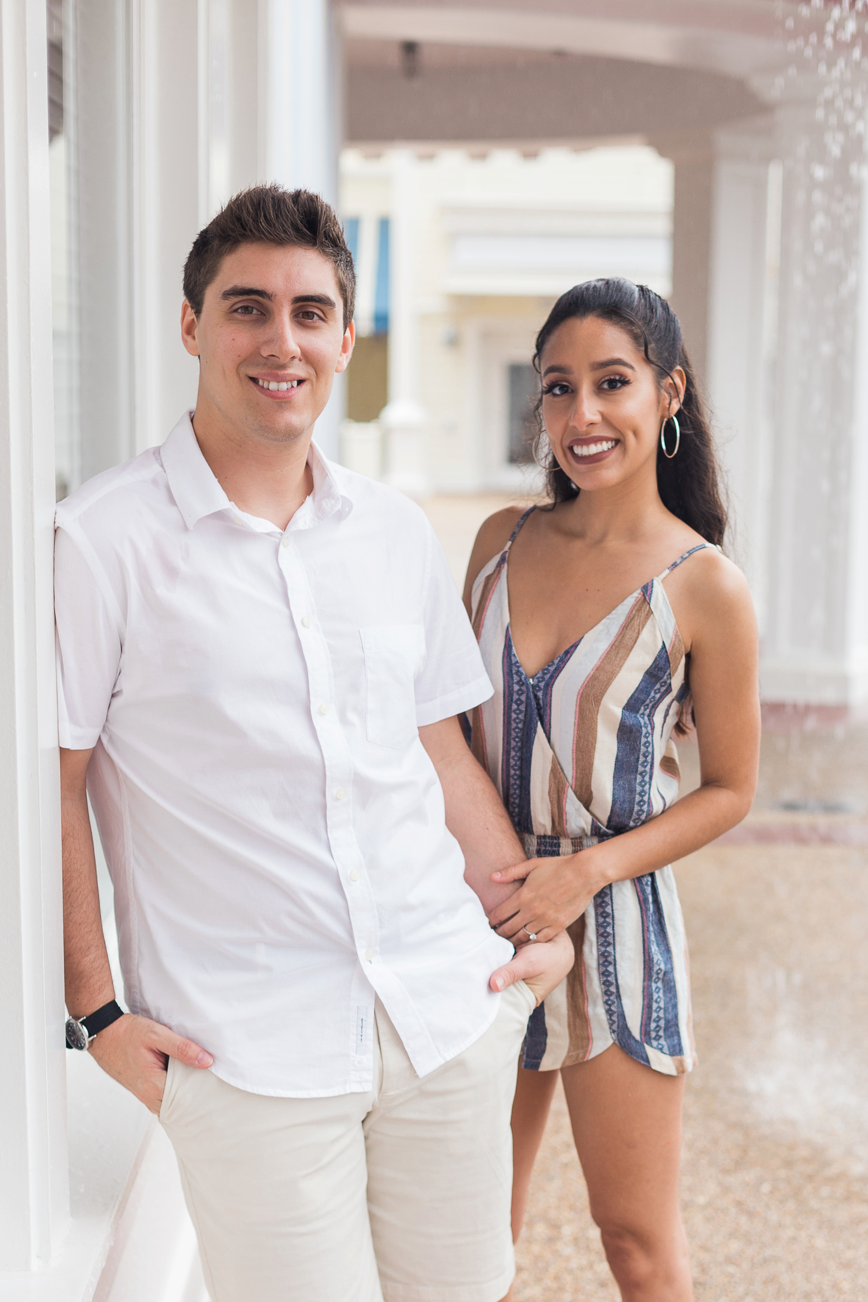 The couple chose Disney’s Boardwalk Resort. A very popular location for many of my clients and for good reason. But on this day, mother nature had it out for us. The session started with some sun but soon, the good ol Florida floodgates would open. Thankfully, there are some great awnings attached to Jellyrolls that we were able to take shelter under and continue shooting.